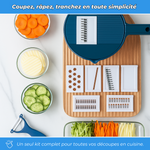 Cet indispensable vous permet de découper, râper et émincer vos légumes ou fruits en quelques secondes, sans effort et en toute sécurité.