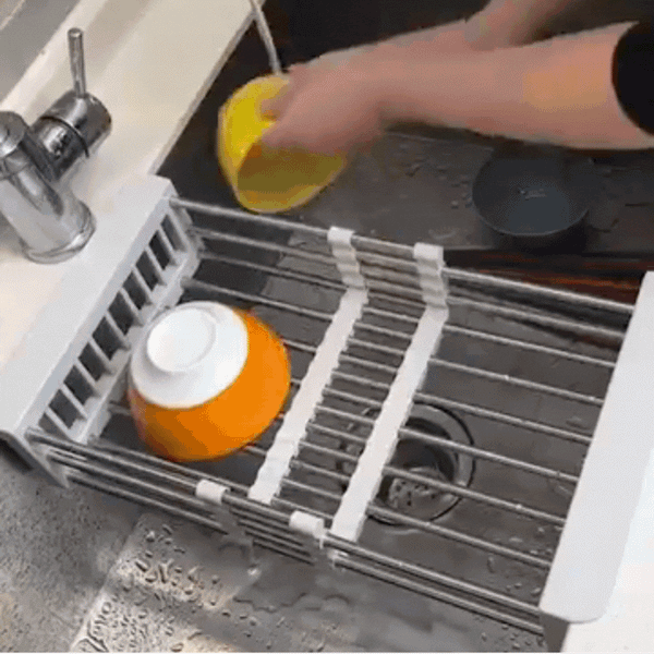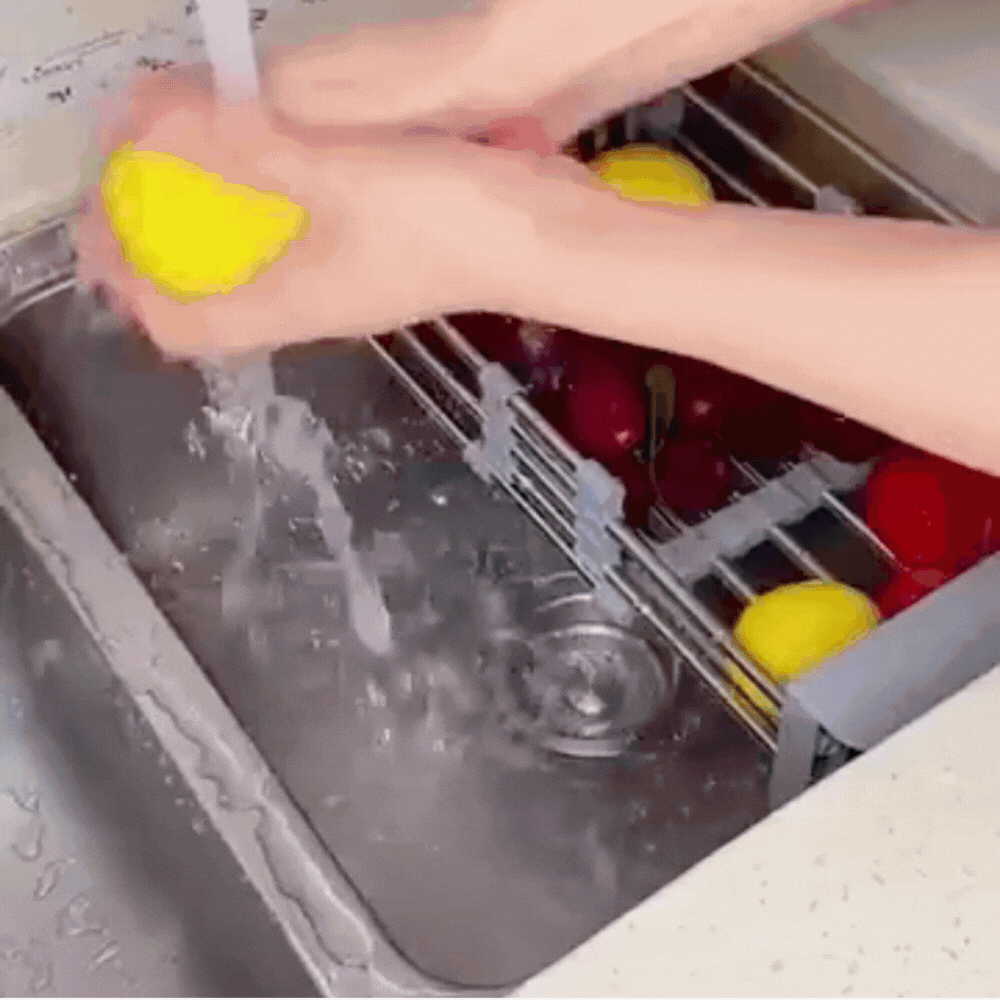 Polyvalent, rince fruits & légumes, égoutte éponges, brosses, couverts et petits ustensiles.