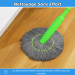 Essorage intégré, fini les mains mouillées ! Le système rotatif évacue l'eau sans effort.