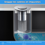 Filtration efficace, bloque cheveux, débris et restes sans ralentir l’écoulement.