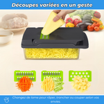 Préparez vos légumes, fruits et garnitures en un temps record grâce à notre trancheuse multifonction 16 en 1, pratique et sécurisée.